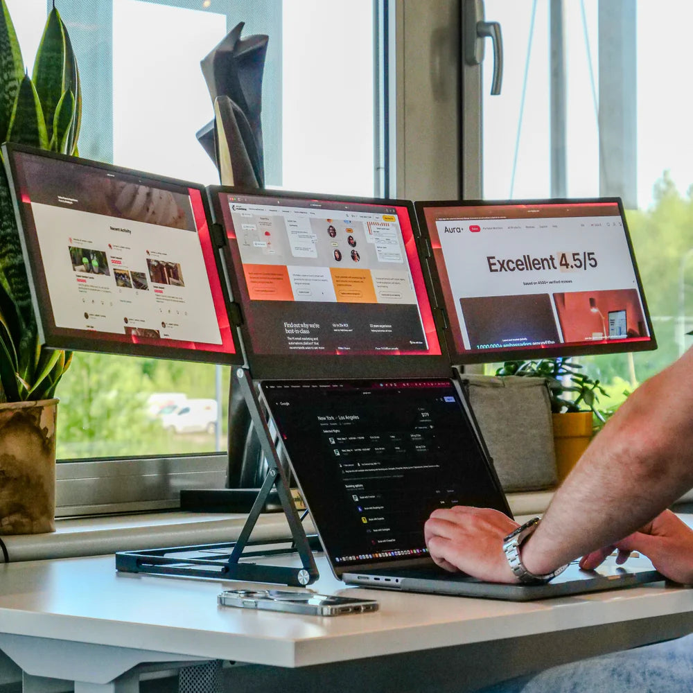 Boost your efficiency and elevate your workflow with cutting- edge tools designed to maximize multitasking. Take your productivity to the next level with the latest Dual Screen Laptop Monitor Setup.