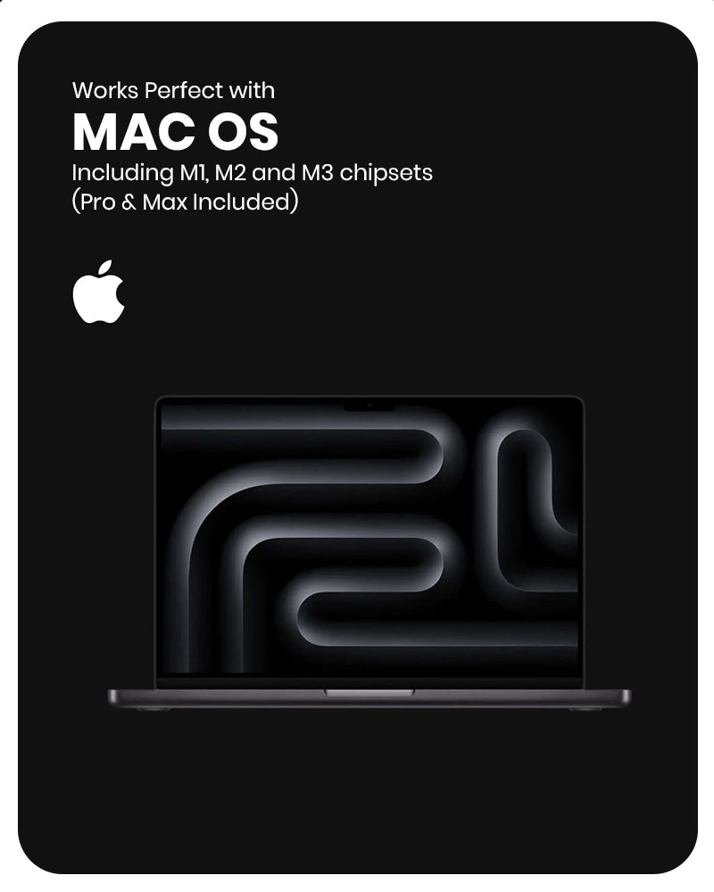 Designed to complement macOS, our portable monitor ensures smooth functionality and an exceptional visual experience. Expand your workspace with effortless compatibility and a sleek design tailored for Apple devices.
